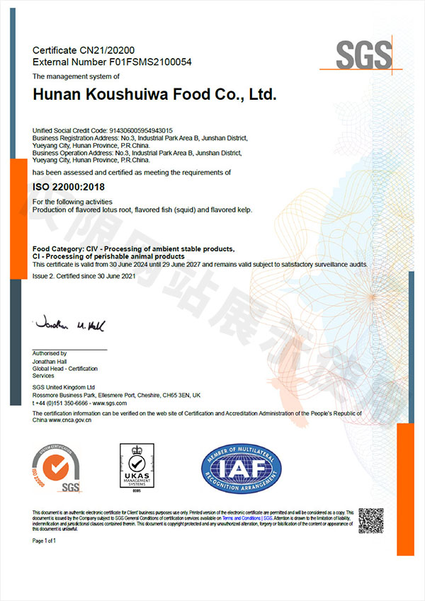 食品安全管理体系证书